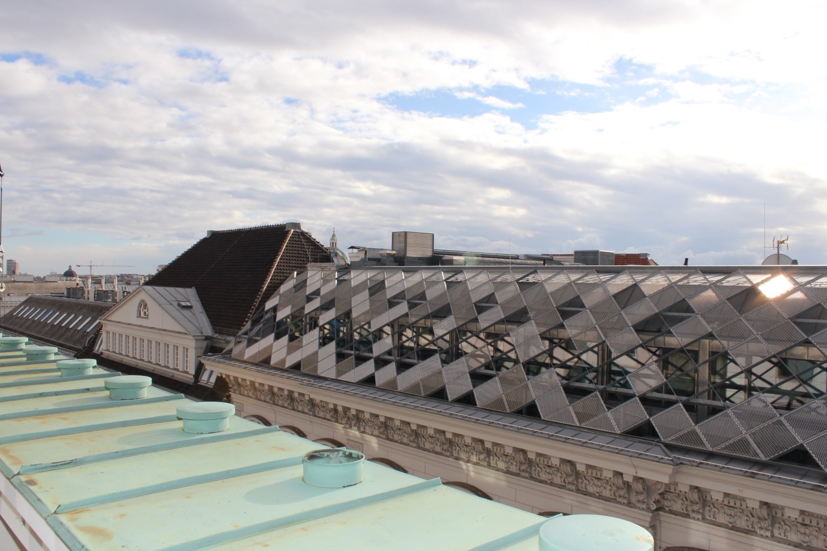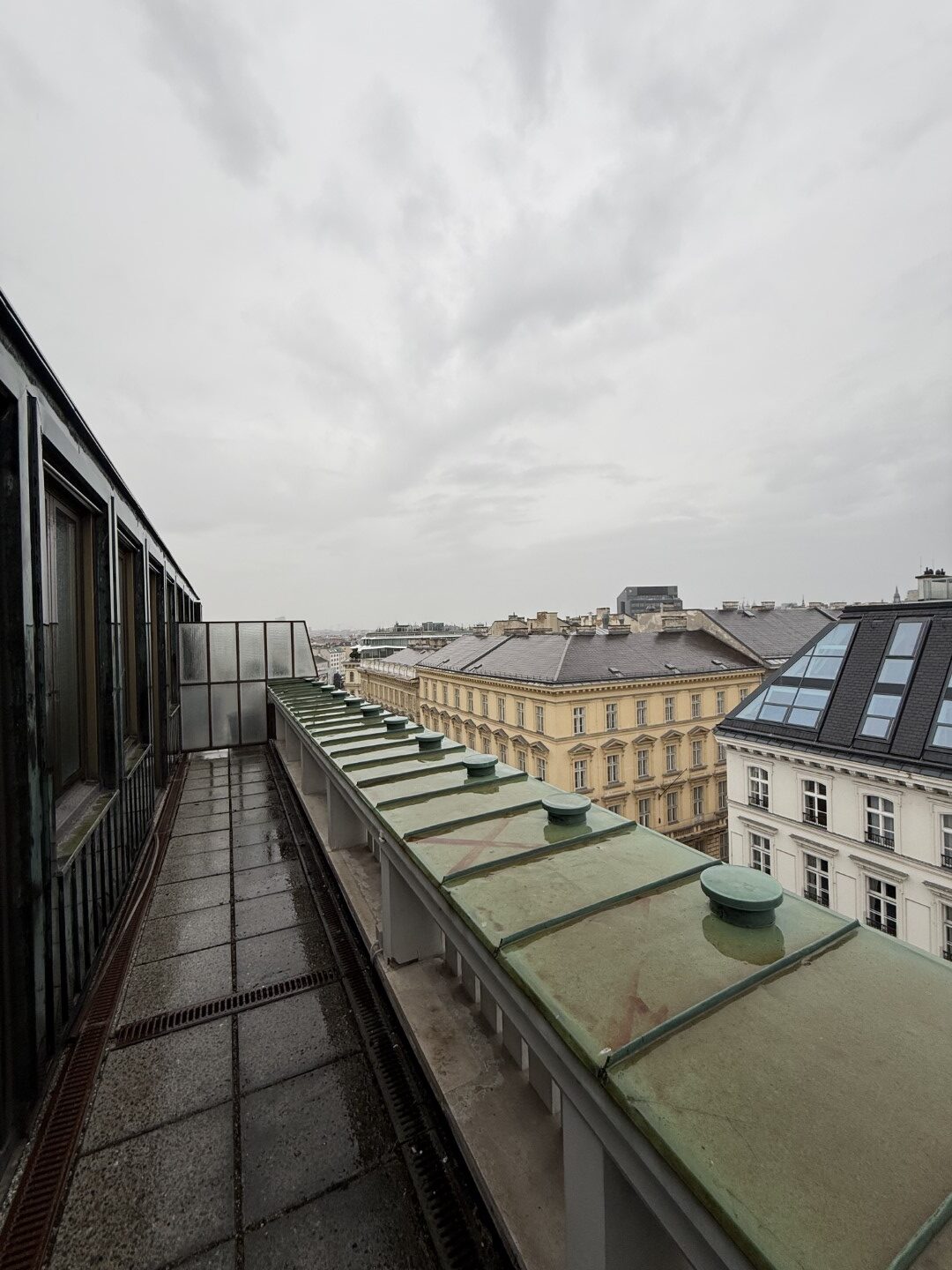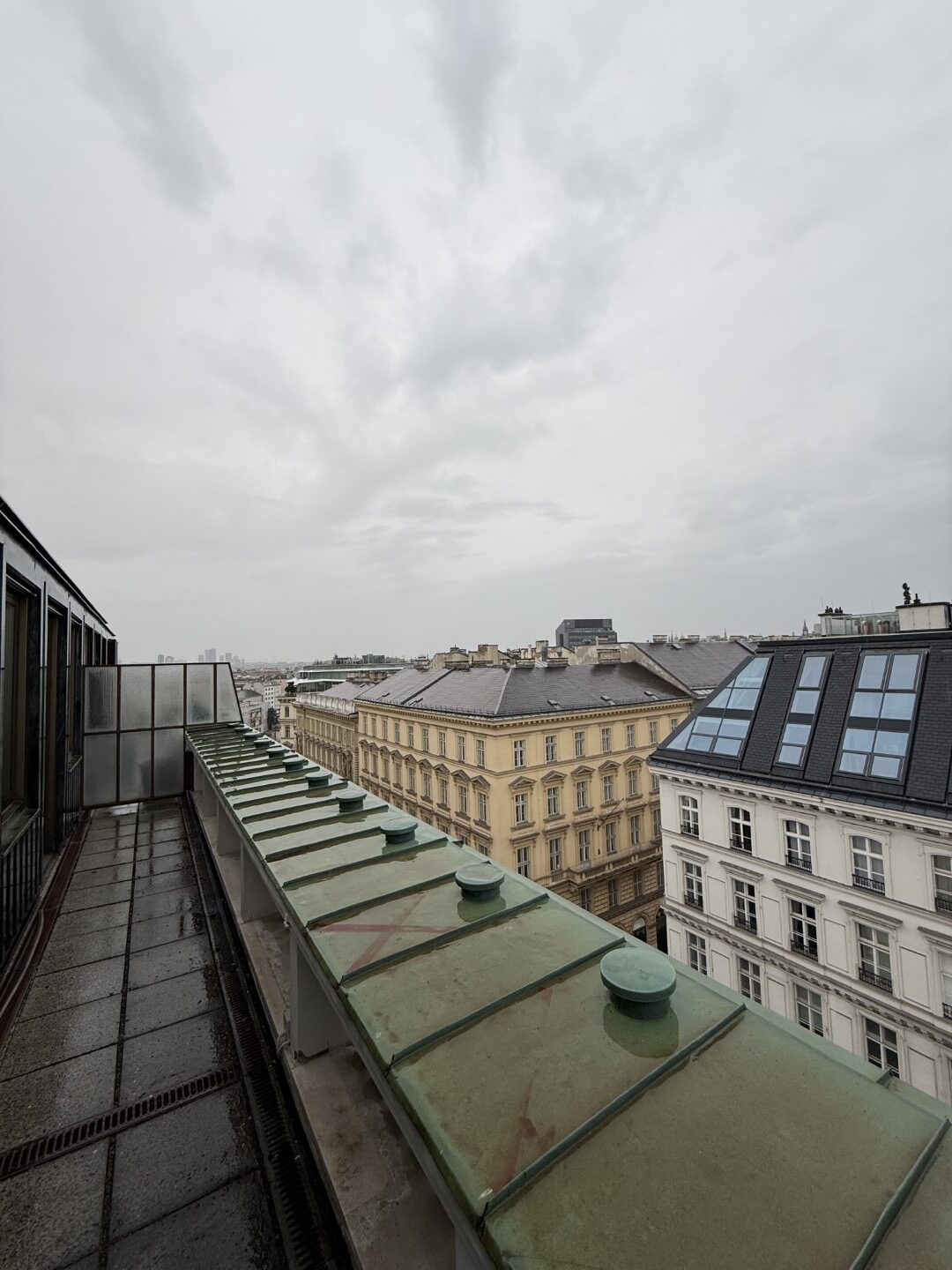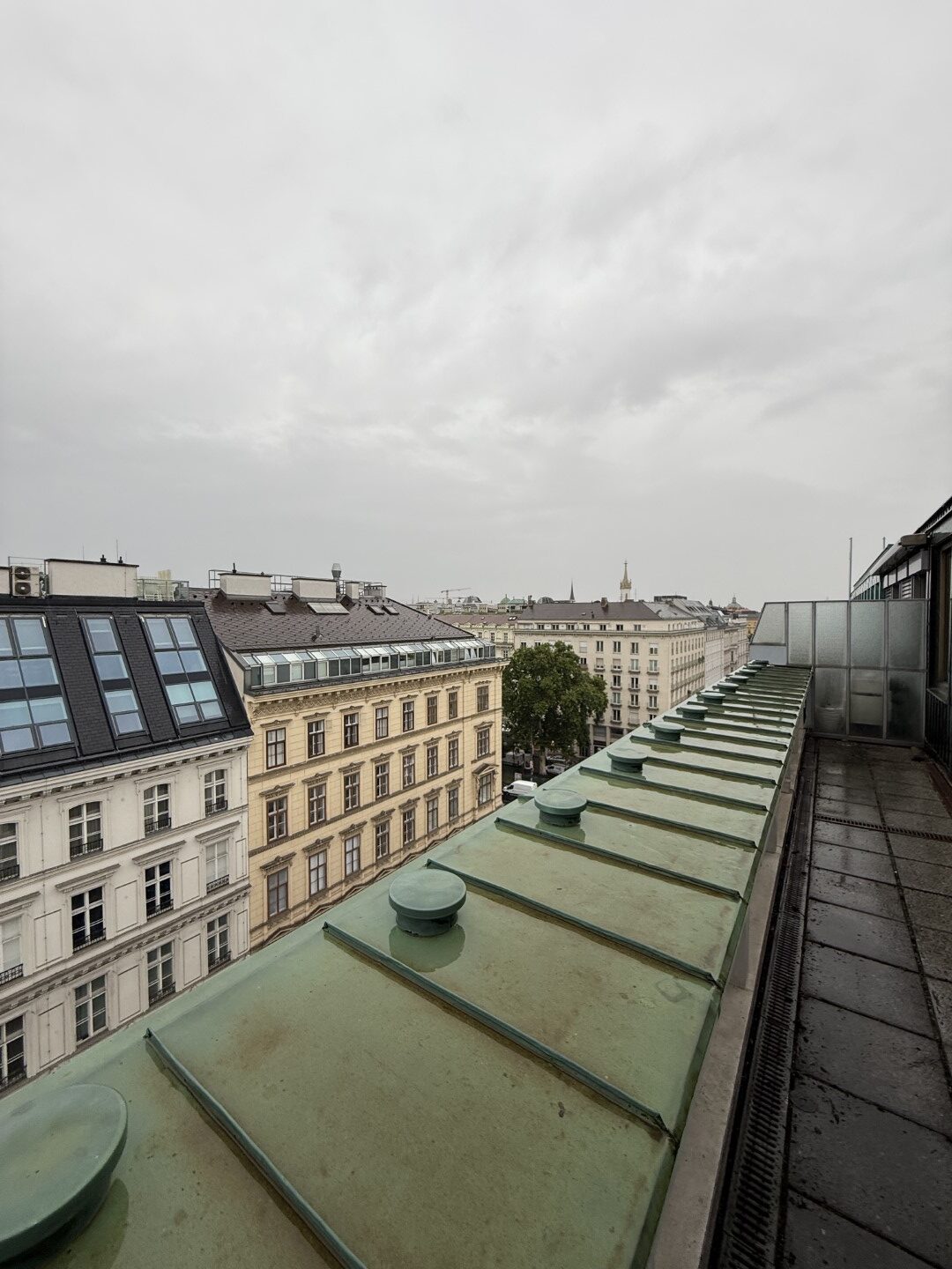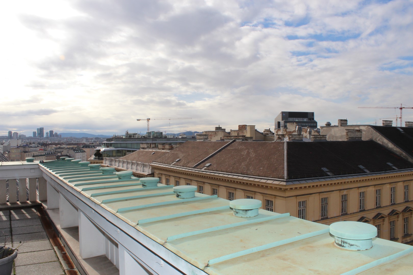 Von der Terrasse aus genießt man einen Rundumblick Richtung Naschmarkt oder einfach über die Dächer der umliegenden Gebäude.