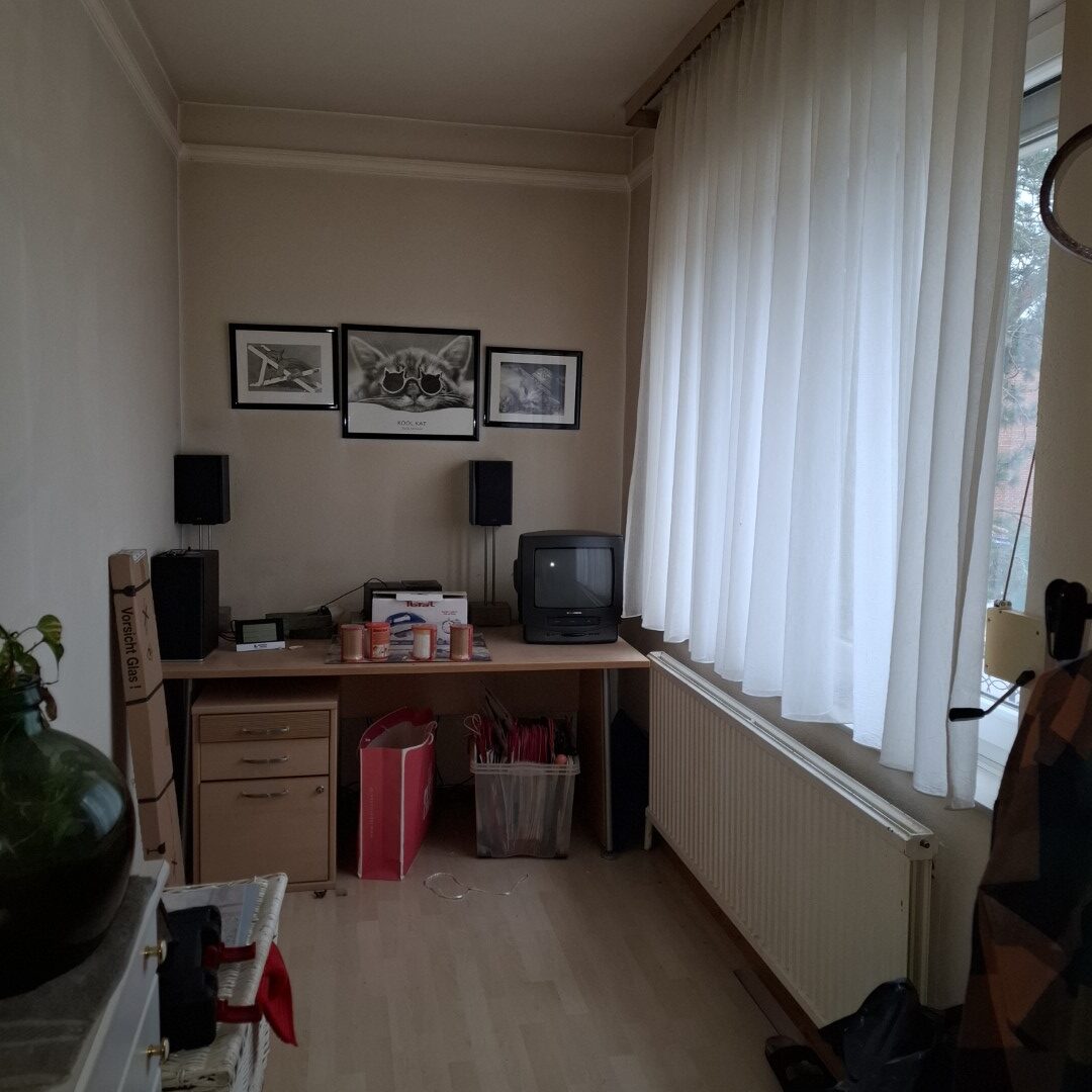 Erdgeschoß: Büro, Abstellraum, WC, Wohnzimmer mit Ausgang auf die Terrasse und in den Garten, Küche komplett mit einer Einbauküche ausgestattet. Das Büro war früher ein 2. Badezimmer, wovon die Anschlüsse noch vorhanden sind.