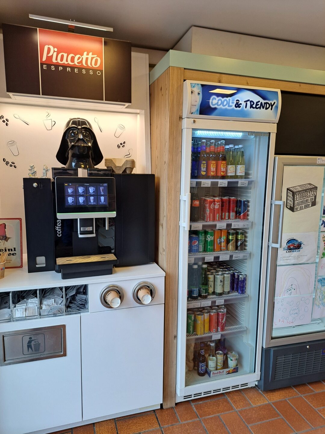 Die Tankstelle besteht aus einem Imbisslokal, Autowaschanlage, Werkstatt mit zwei Montagegruben